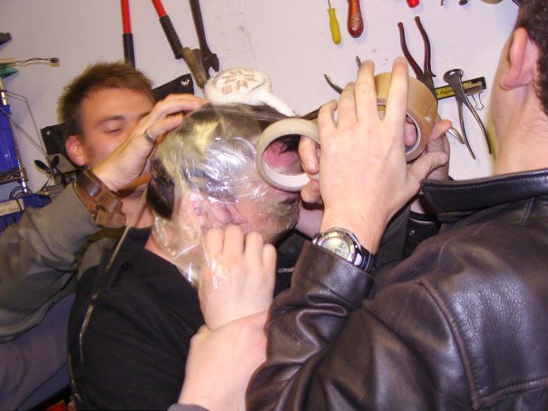 Betney volunteered to play fire-wang, so some extremely flammable acetone was used to soak a long piece of kitchen roll. This was jammed between his legs and the det-cord lit. The video below will attest to the horror that ensued.